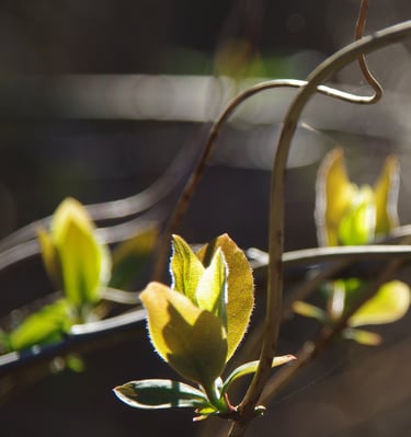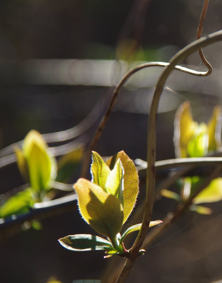 Tijdens een winterbosbad viel mijn oog eens op een groen klimopje dat uitstak boven de dorre bladeren. Ik verwonderde me over de eigenschappen van deze plant. De klimop groeit vol enthousiasme en overgave, en laat zich niet tegenhouden door kou of obstakels. Ik glimlachte naar de klimop en bedankte het voor het voorbeeld dat het me gaf.